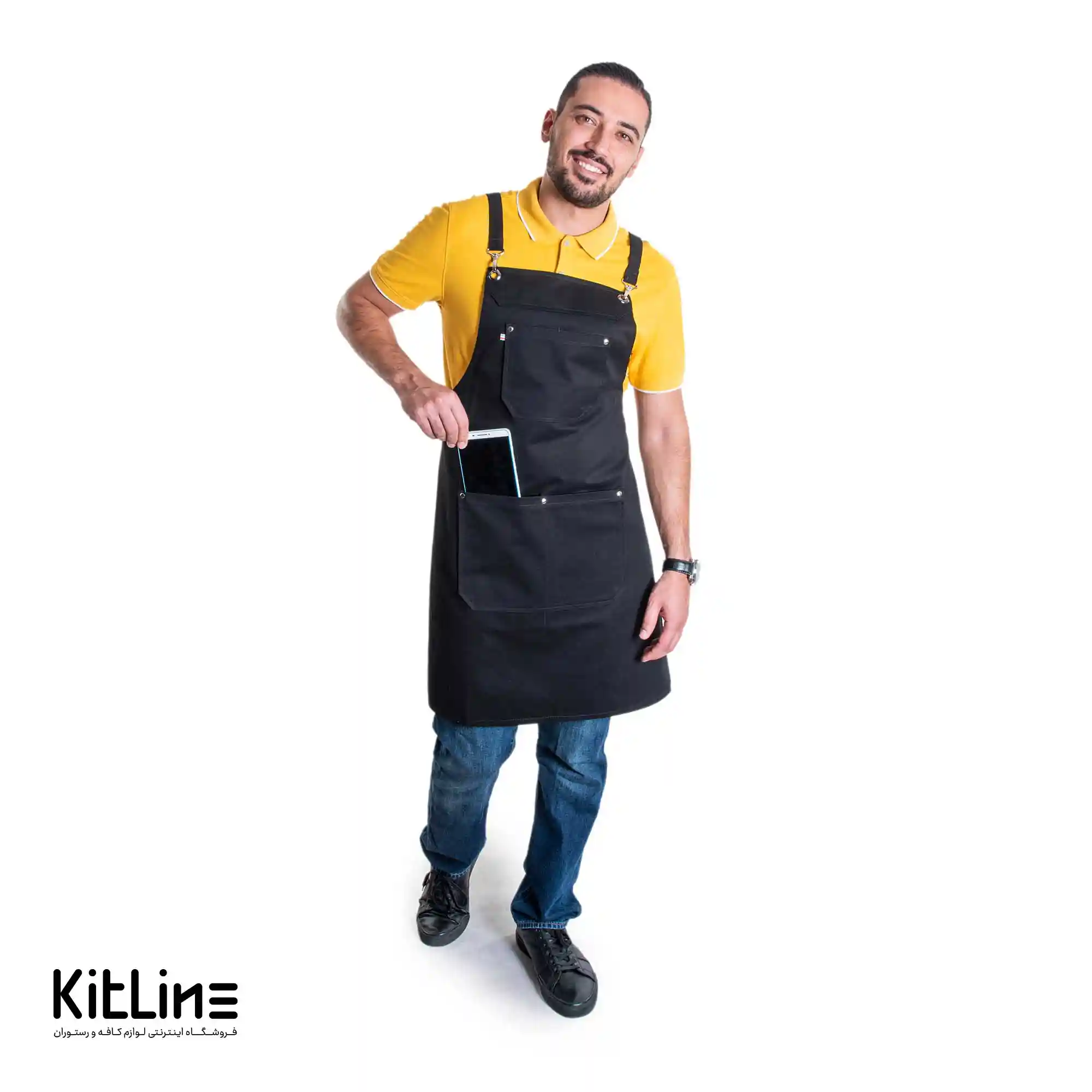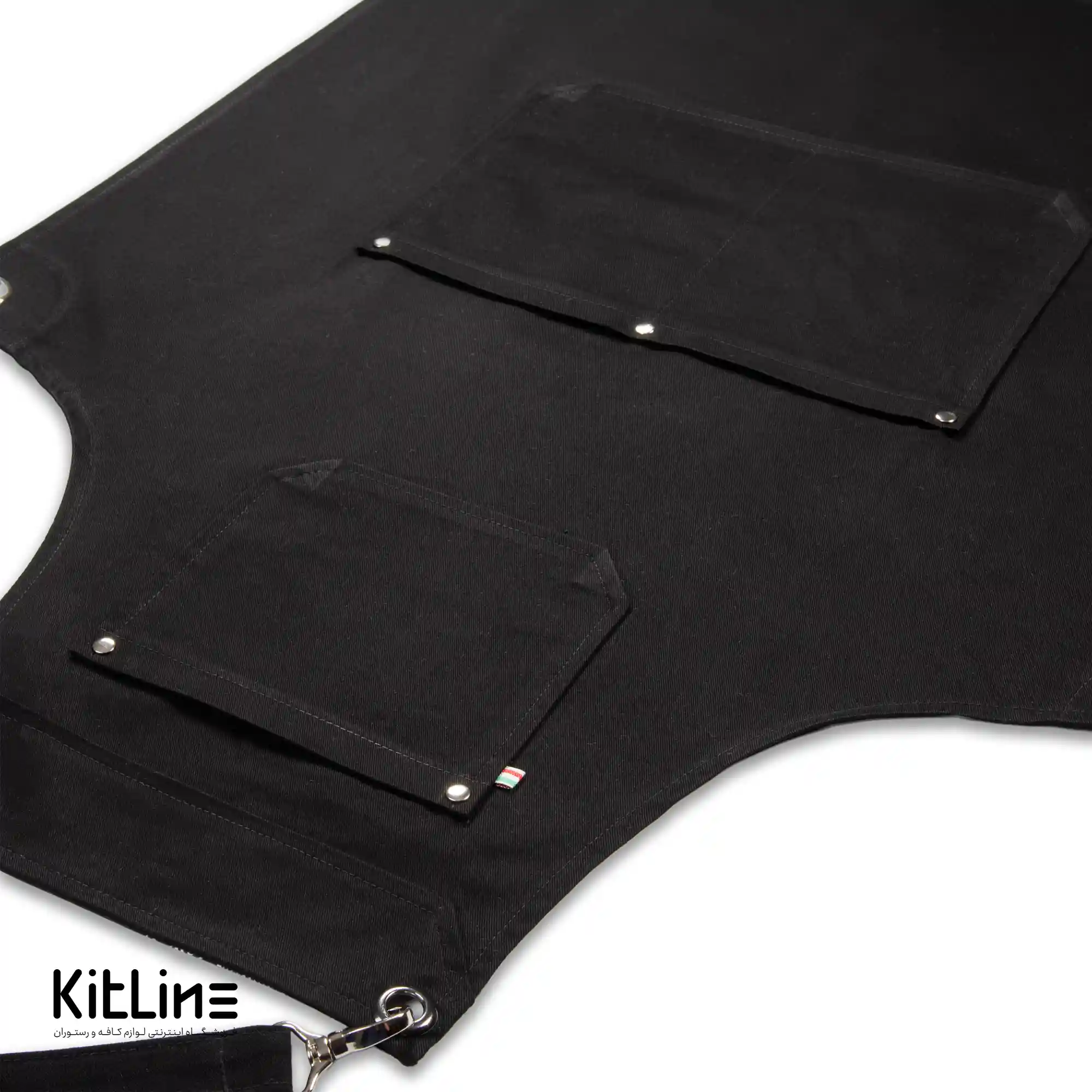 این پیشبند کتان کجراه با ۳ جیب مشکی (۲ جیب بزرگ در پایین پیشبند و ۱ جیب بزرگ در بالای پیشبند) یک محصول کارآمد و کاربردی برای استفاده در صنایع مختلف مانند کافهها، رستورانها است. این پیشبند با جنس کتان کجراه دوخته شده است