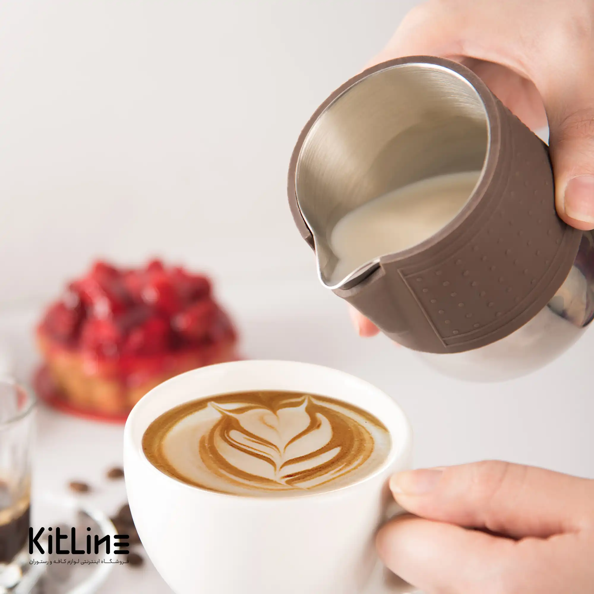 پیچر استیل بدون دسته، با روکش سیلیکونی و طراحی منحصربهفرد، ابزاری ایدهآل برای باریستاهای حرفهای و علاقهمندان به هنر لاته آرت است.