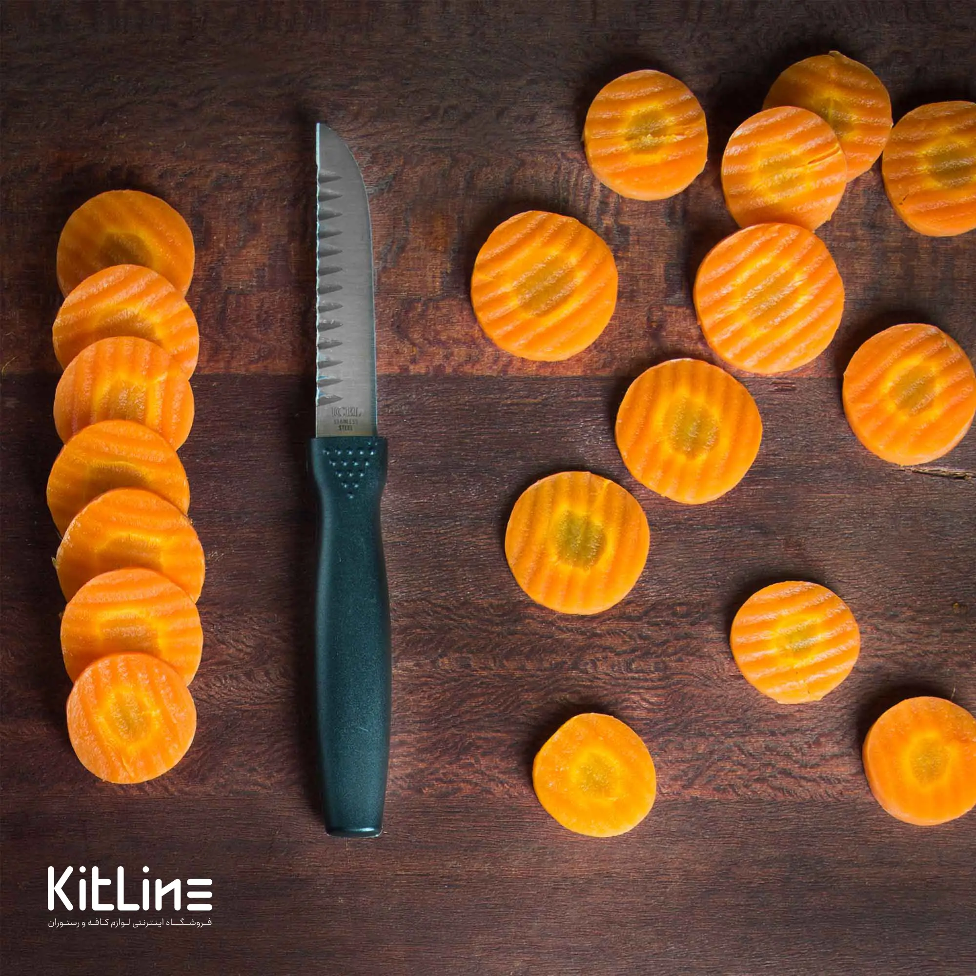 - موارد استفاده: این چاقو مناسب برای برش و تزیین انواع میوهها و سبزیجات مانند سیبزمینی، هویج، خیار و غیره است. همچنین، میتوان از آن برای ایجاد طرحهای زیبا و خلاقانه روی سایر مواد غذایی استفاده کرد.
