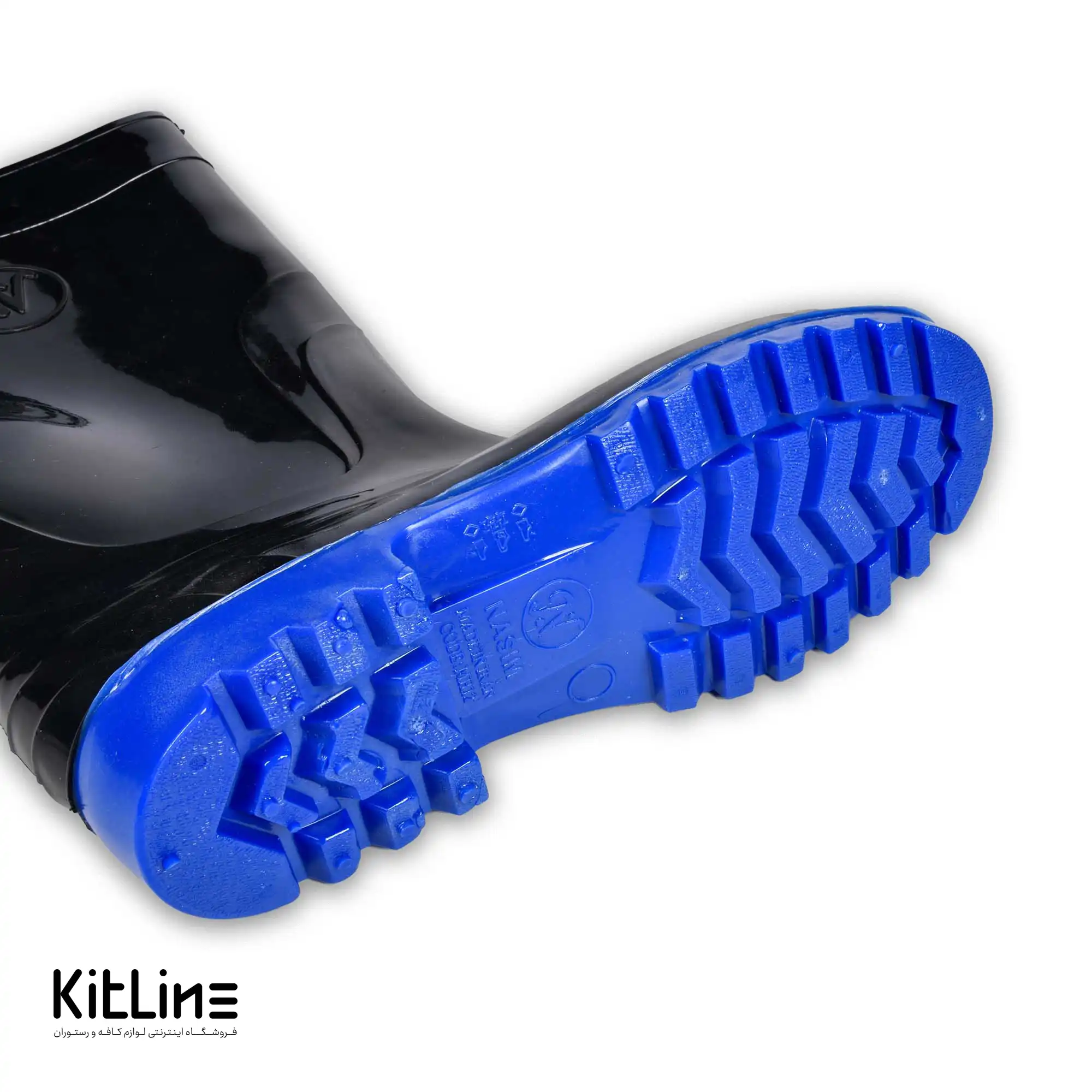 چکمه پلاستیکی ساق بلند مشکی زیره آبی: محافظی ایده‌آل برای پاها در محیط‌های کاری مرطوب و لغزنده