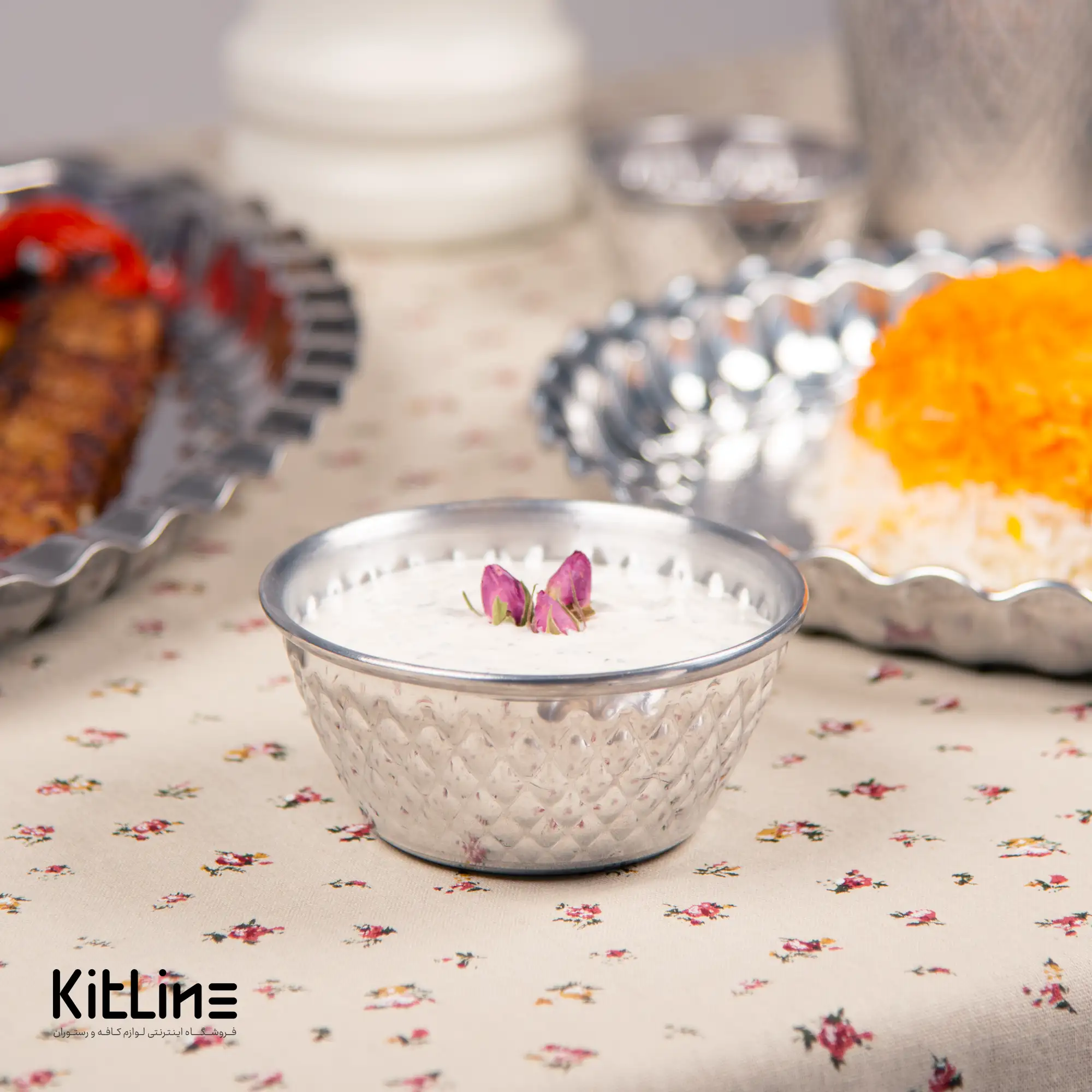 - طراحی طرح الماس: طراحی طرح الماس این کاسه، ظاهری زیبا و سنتی به آن بخشیده که مناسب برای سرو انواع مخلفات در میز غذاخوری است.