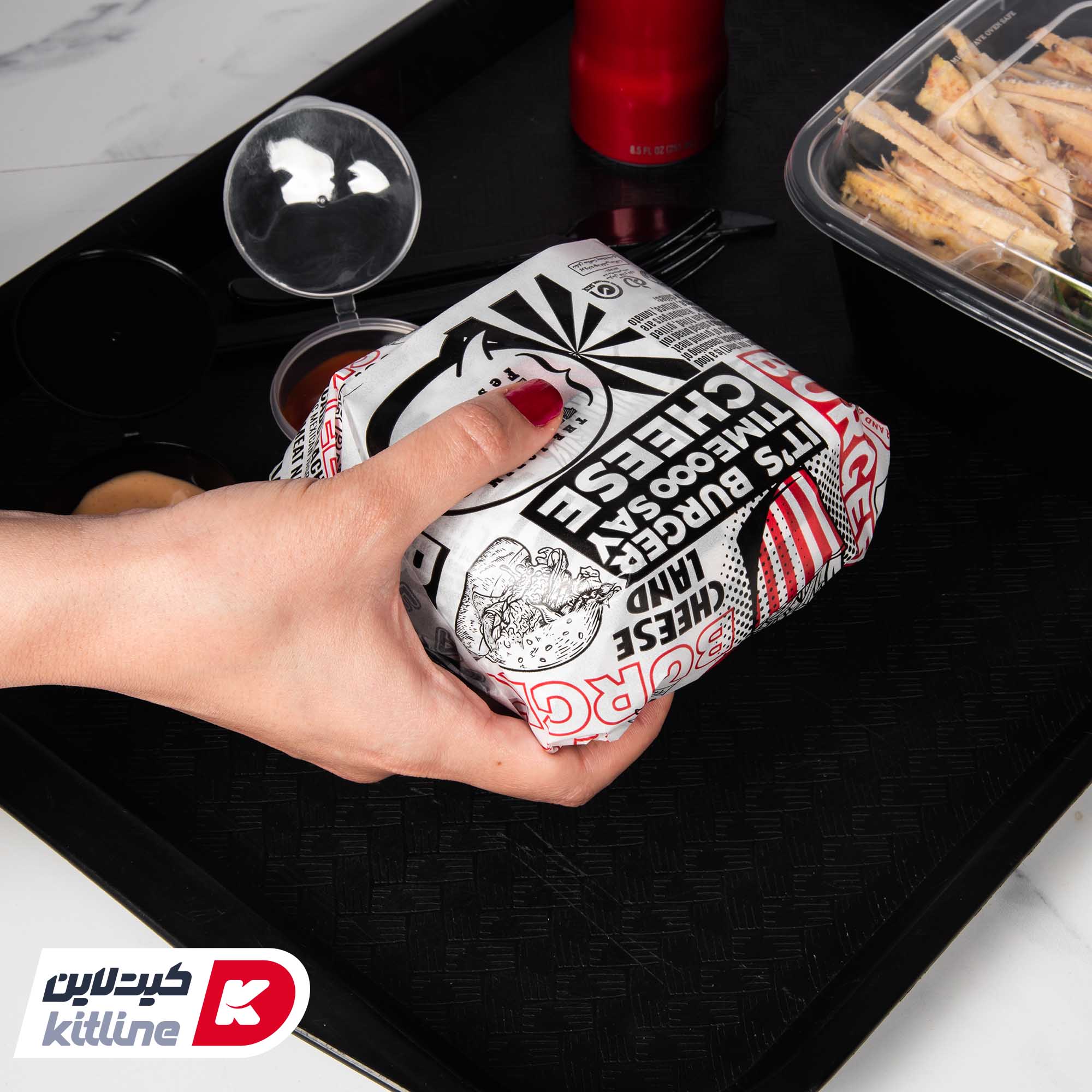 • مومی بودن این کاغذ و بسته بودن دور تا دور آن باعث می­شود تا روغن و سس به بیرون نشتی نداشته باشد و در صورت خارج شدن محتویات برگر از داخل نان به بیرون نریزد.