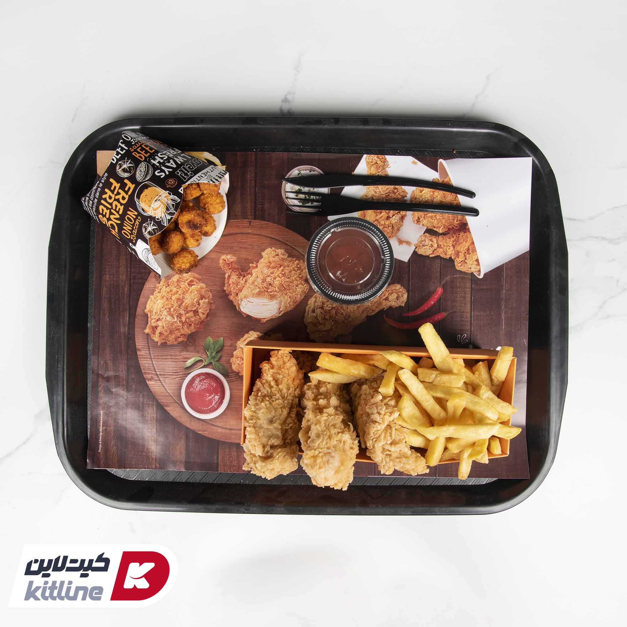 در صنعت فست فود بسته بندی از چند جهت حائز اهمیت است. اولا بسته بندیها باید بتواند به سادهترین شکل معرف نوع خوراک باشد و ثانیا بتواند از لحاظ بهداشتی محافظ مناسبی در برابر آلودگی های محیطی باشد. از طرفی می توان با طراحی مناسب بسته بندیها از قبیل کاورهای ساندویچ، بستههای سیب زمینی و کنتاکی یا کاغذهای کف سینی تاثیر تبلیغاتی مناسبی در ذهن مخاطب برجای گذاشت. از کاغذ کف سینی ۲۴×۳۴ سانتیمتر طرح سوخاری میتوان روی سینیهای فست فود برای سرو داخل سالن استفاده کرد تا هر بار پس از استفاده مشتری با تعویض کاغذ از انتشار آلودگی جلوگیری کرد. وزن هر کارتن حاوی کاغذ کف سینی در حدود ۵ کیلوگرم می باشد.