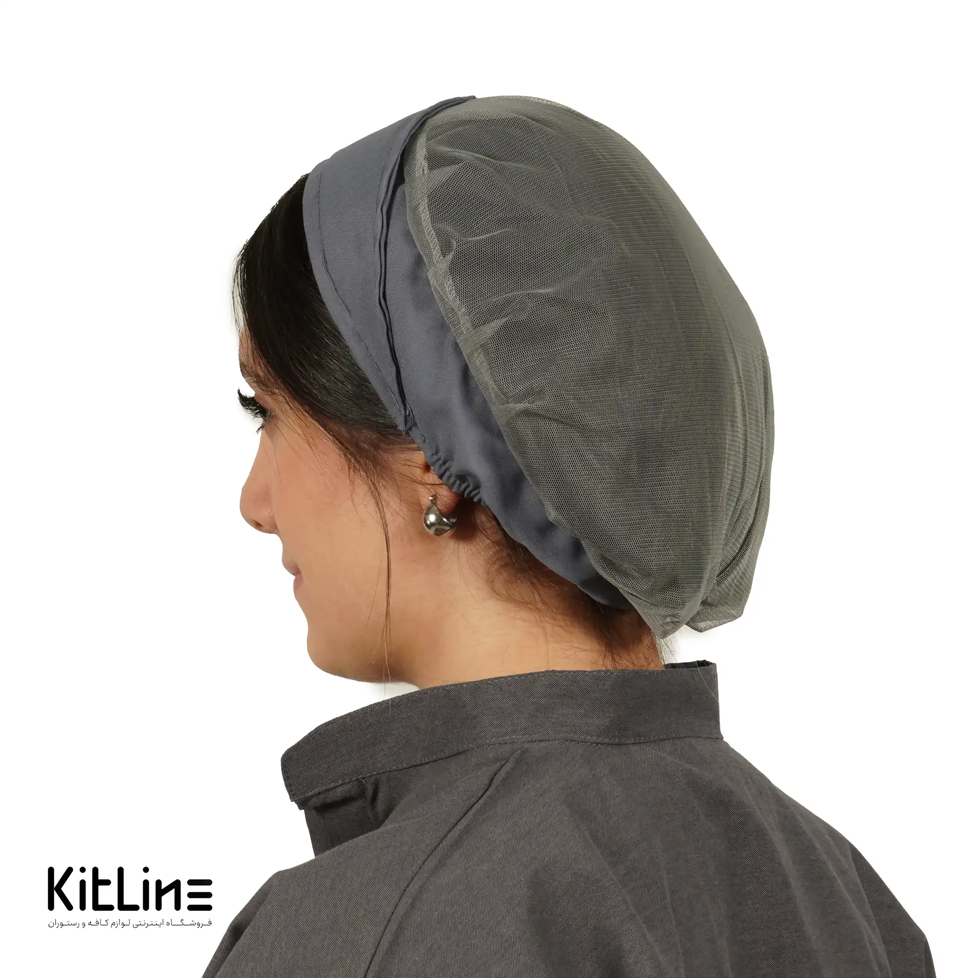 کلاه آشپزی توری پشت کش‌دار طوسی