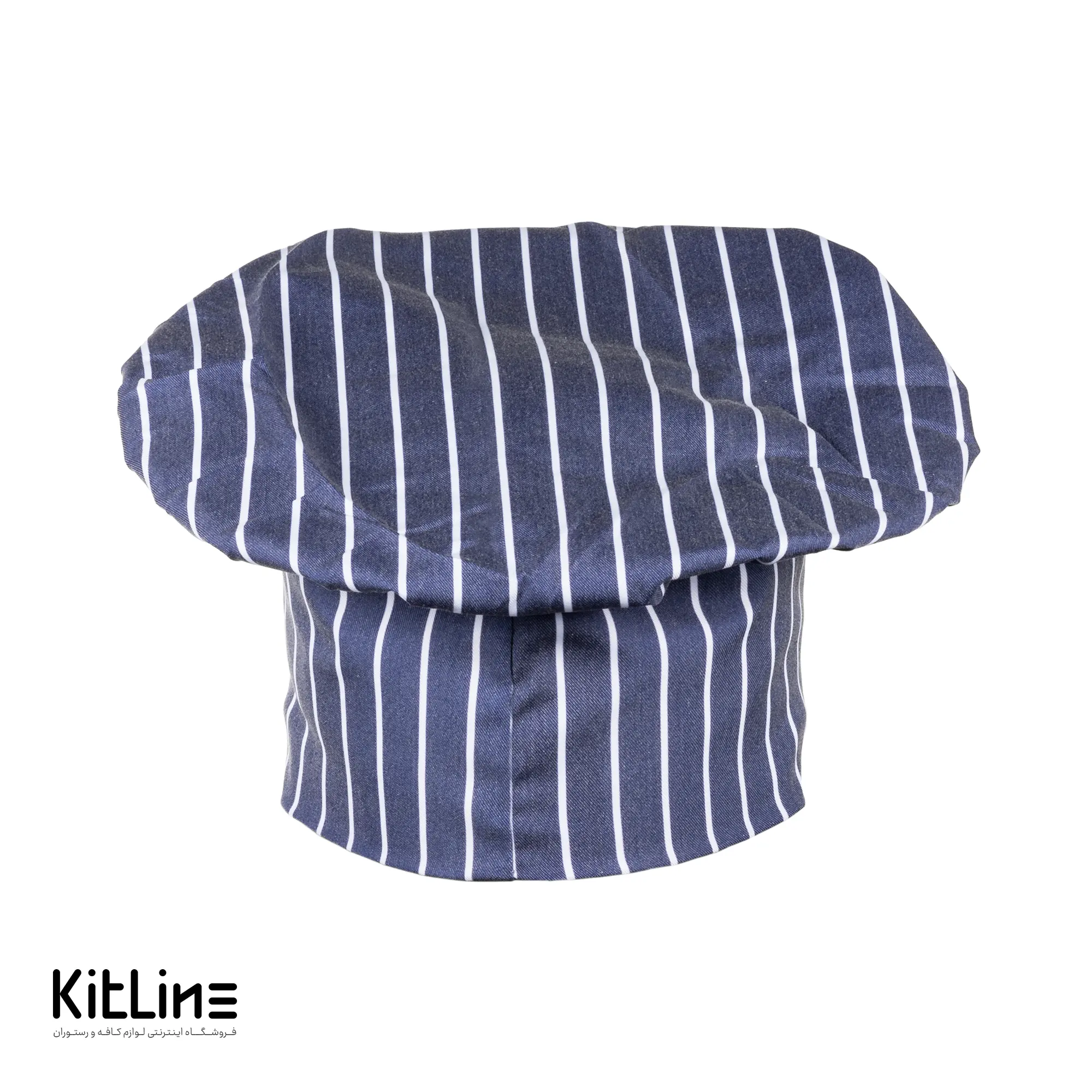 - طراحی شیک و حرفهای: کلاه با راه راههای سرمه ای جذاب، به ظاهر آشپزها جلوهای حرفهای و شیک میبخشد. این طراحی زیبا و هماهنگ با لباسهای آشپزی، نمایی منظم و یکپارچه ایجاد میکند.
