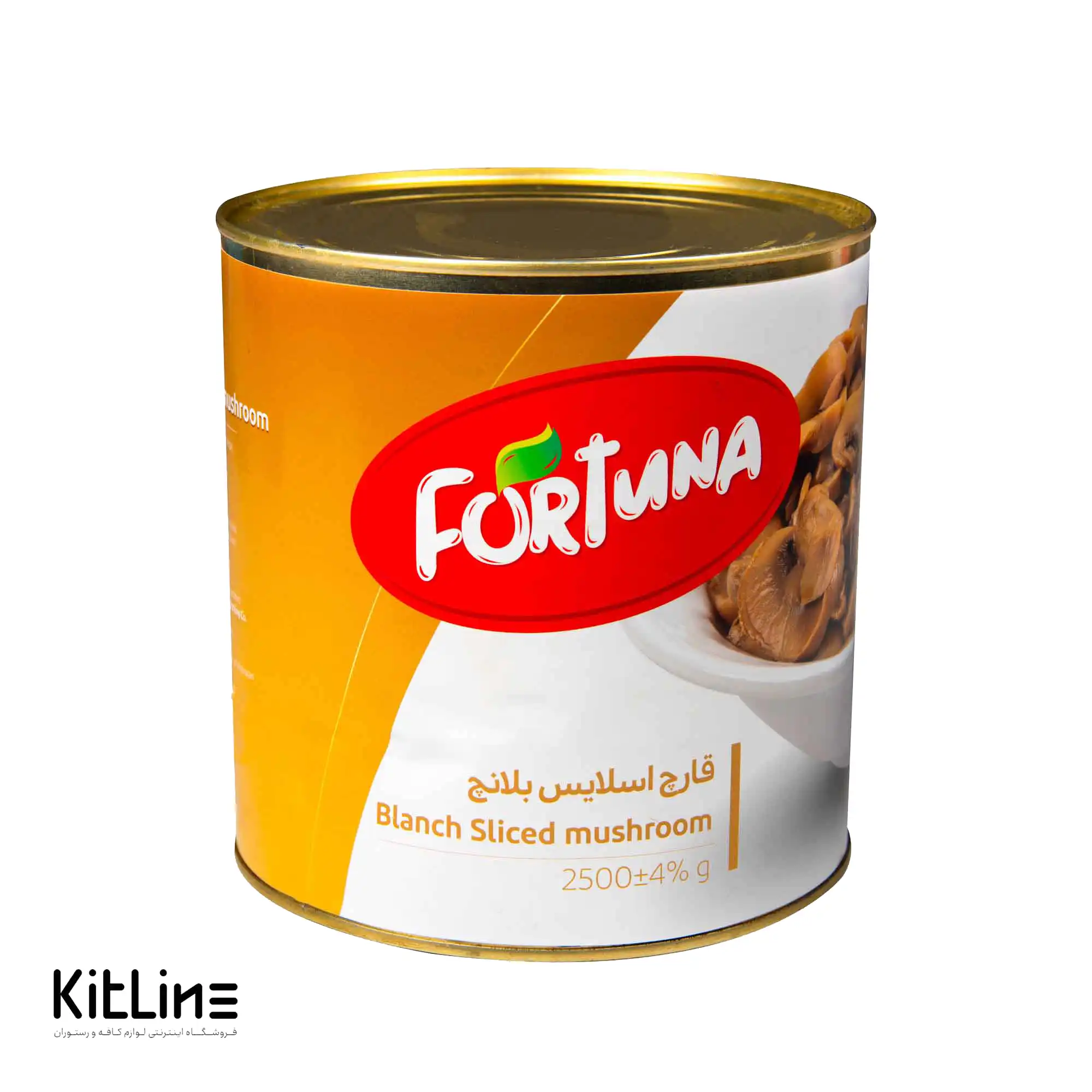 کنسرو قارچ اسلایس بلانچ ۲.۵ کیلویی فورتونا بدون هیچ نوع مواد افزودنی و نگهدارنده می باشد. این محصول استرلیزه شذه است و توسط شرکت تهیه و بسته بندی غذای هانی به سفارش کیت لاین تولید شده است.