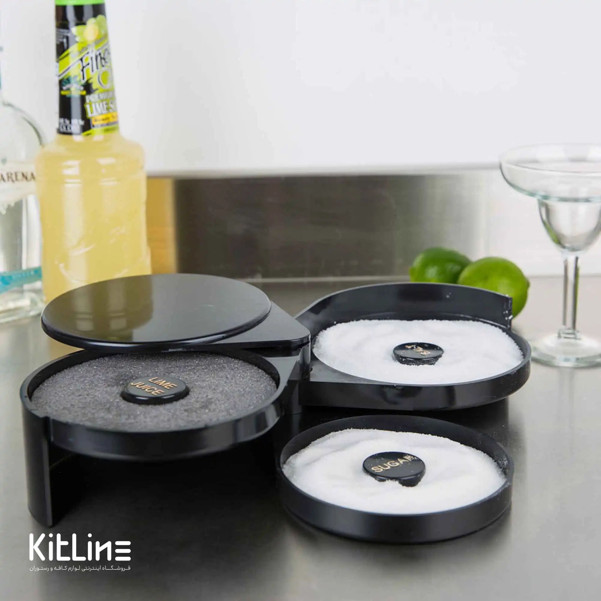 گلس ریمر پلاستیکی ۳ تایی (Glass Rimmer) یک ابزار ساده و بسیار کارآمد در قسمت بار سرد کافه است. برای گارنیش (تزئین) لبه لیوانها در تهیه نوشیدنیهای مختلف، بهویژه کوکتلها، استفاده میشود. این ابزار شامل سه محفظه اصلی برای نمک، شکر، و آبلیمو (یا سایر شربتها) است که بهصورت تاشو و چرخشی می باشد تا در زمان استفاده و ذخیرهسازی فضا را بهینه کند.